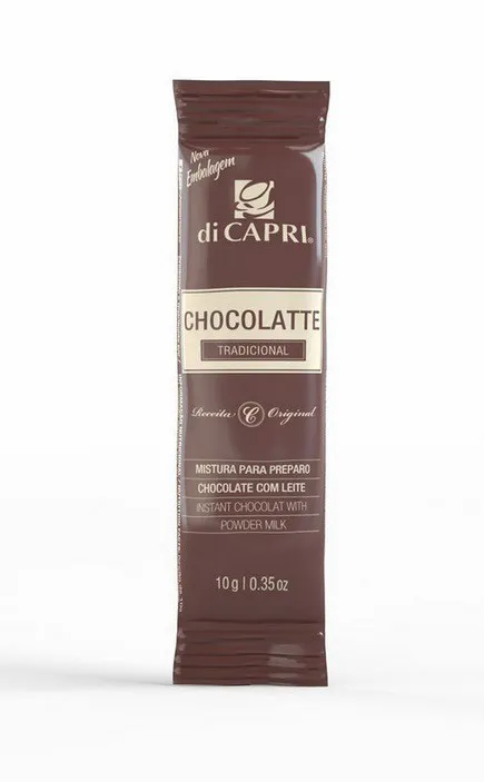 Sachê de Chocolate Di Capri 20g cada Os sachês já vem adoçado, sendo ideal para cestas de café da manhã, hotéis, pousadas ou porções individuais, para quem quer praticidade e rapidez no preparo, pois basta adicionar água fervente para preparar um delicioso cappuccino, chocolate ou café com leite.