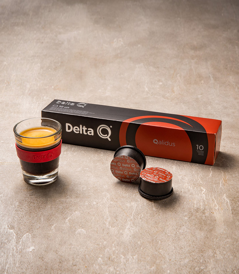 Delta Q Qalidus Intenso e ousado 10 Intensidade O Delta Q Qalidus nasceu da fusão de cafés robustas de Angola e Camarões e arábica de Honduras. O Delta QQalidus dá origem a um espresso encorpado, com forte presença na xícara, com leve acidez e notas de caramelo.