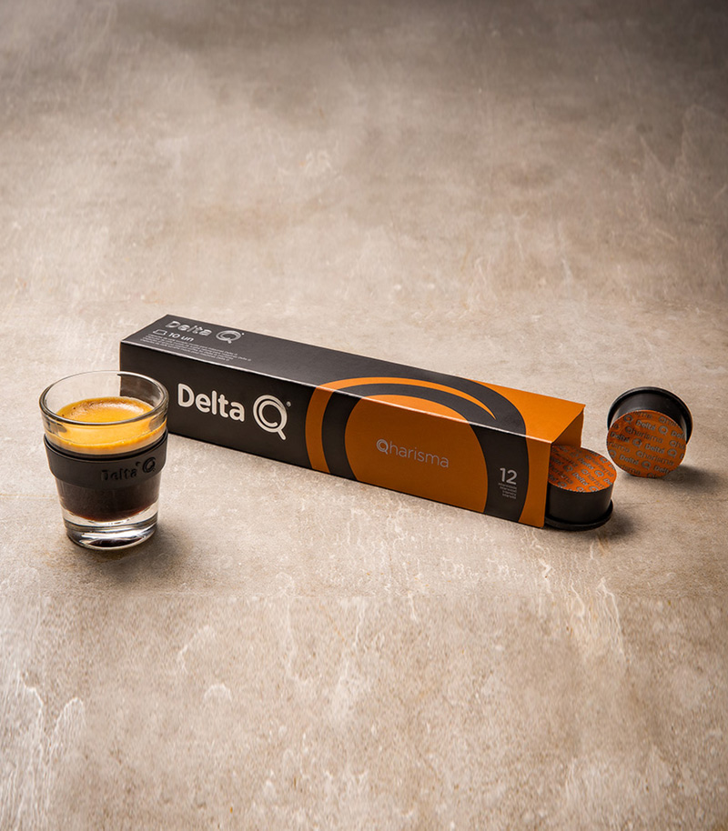 Delta Q Qharisma Vivo e encorpado 12 Intensidade O blend Delta Q Qharisma nasceu da mistura perfeita de cafés da Índia, do Togo e Uganda. É um blend encorpado e muito intenso, origina num expresso de aroma notável.