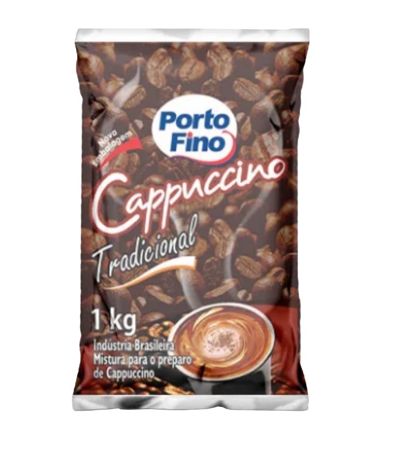 Cappuccino Tradicional Porto Fino - 1 Kg Indústria Brasileira Mistura para o preparo de Cappuccino Um sabor inigualável. Com uma mistura perfeita de café, leite echocolate. Já vem adoçado.