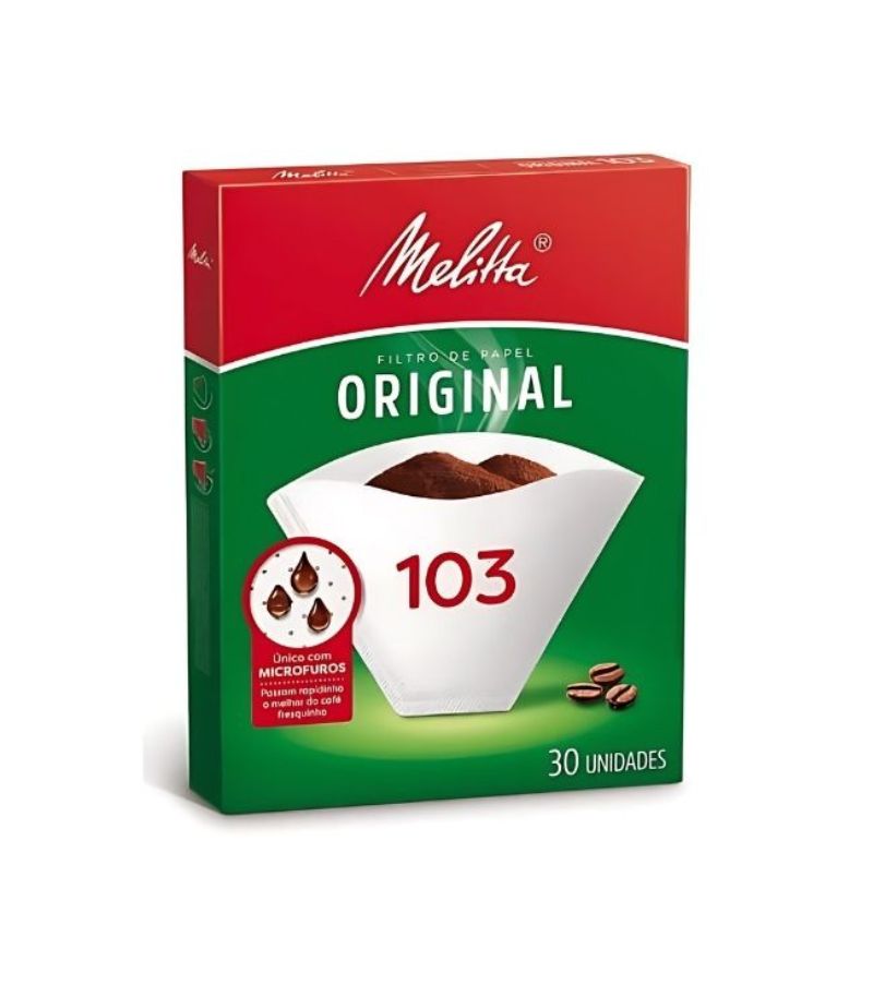 Filtro de Papel Melitta 103 com 30 unidades Filtro de Papel 103 Melitta 30 unidades: O filtro de café Melitta possui exclusiva tecnologia Aroma Max, que consiste em micro furos que mantêm o pó e a água juntos pelo tempo ideal para proporcionar um café saboroso e aromático.