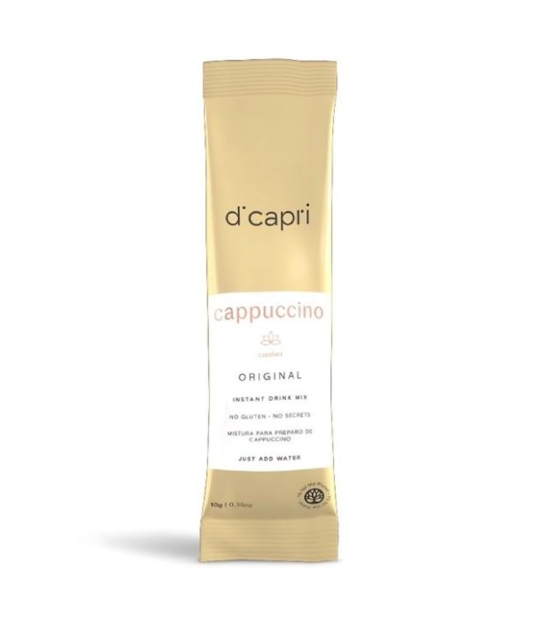 Com tradição italiana e qualidade brasileira do café, os cappuccinos clássicos Di Capri se diferenciam no mercado pela qualidade e composição de seus ingredientes. Sua principal matéria prima é o leite em pó, fonte de proteína, rico em cálcio, fósforo, potássio e magnésio entre outras vitaminas e minerais, além do cacau e café considerados como super food, ou seja alimentos que em pequenas quantidades tem alto valor nutritivo. Ele na versão chocolate suíço possuem um toque a mais no sabor de chocolate suíço e ainda vem adoçado, sendo ideal para quem quer praticidade e rapidez no preparo, pois basta adicionar água fervente para preparar um delicioso cappuccino, ou até mesmo na versão gelado bastando bater no mixer ou liquidificador. Ingredientes Leite em pó integral, açúcar, maltodextrina, café solúvel, cacau em pó, regulador de acidez bicarbonato de sódio, antiumectante fosfato tricálcico, aromatizante e espessante ccmc. Não contém glúten. Alérgicos: contém leite. Modo de preparo Em uma xícara de café coloque o conteúdo do envelope (10g), em seguida adicione 30 ml de água fervente e misture bem para beber gelado, utilize a mesma medida com água gelada, bata com um mixer ou no liquidificador. Conservação Conservar em local seco, arejado e sem incidência de luz solar direta.