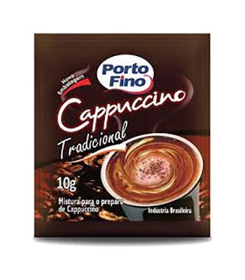 Sache Cappuccino tradicional Porto Fino 10g, para preparo de cappuccino. CAIXA COM 100 UNIDADES. Os Cappucinos Porto Fino são uma deliciosa combinação dos grãos de café rigorosamente selecionados com a cremosidade das receitas italianas. *% Valores diários com base em uma dieta de 2000kcal ou 8400kJ. Seus valores diários podem ser maiores ou menores, dependendo de suas necessidades energéticas.